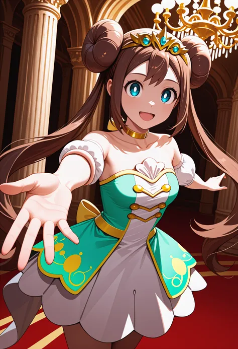 r0s4def, long hair, brown hair, double bun, doughnut hair bun, twintails, visor cap, blue eyes, bright pupils, white pupils, pink bow, white shirt, poke ball print, sleeves past elbows, raglan sleeves, yellow shorts, short shorts, pantyhose under shorts, black pantyhose, sneakersr0s4school, long hair, brown hair, double bun, doughnut hair bun, twintails, pink hairband, blue eyes, bright pupils, white pupils, grey jacket, blazer, buttons, open jacket, long sleeves, red vest, white shirt, collared shirt, neck ribbon, yellow ribbon, white skirt, pleated skirt, checkered skirtr0s4champ, long hair, brown hair, double bun, doughnut hair bun, twintails, tiara, blue eyes, bright pupils, white pupils, short dress, two-tone dress, white dress, green dress, strapless dress, detached sleeves, gold choker, bare shoulders, collarboner0s4holiday, long hair, brown hair, sidelocks, double bun, doughnut hair bun, twintails, red headwear, santa hat, blue eyes, bright pupils, white pupils, santa costume, red capelet, red dress, santa dress, sleeveless dress, black gloves, fur-trimmed gloves, belt buckle, black thighhighs, red footwear, boots