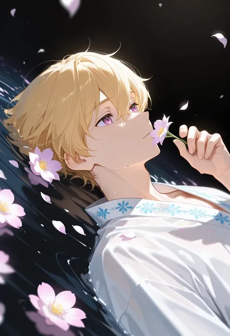 Fr33Nag1saH4zuk1, 1boy, male focus, blonde hair, hair between eyes, purple eyes