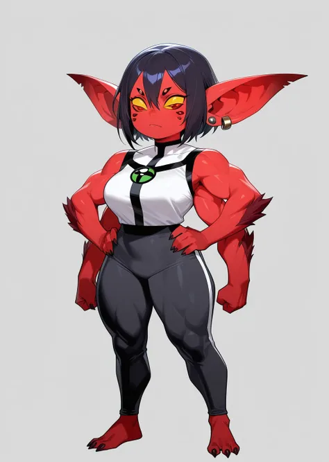 red skin, colored skin, muscular, alien, 4arms, multiple arms, multiple eyes, 4eyes, ben10,