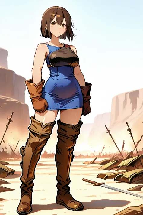 fft_archer,muneate,red_dress,short dress,sleeveless dress,thigh boots,brown footwear,leather gloves,leather boots,brown gloves,gloves