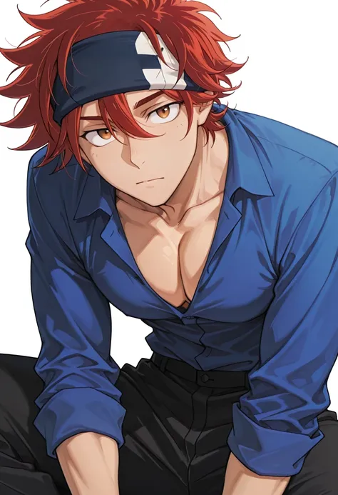 Sk8R3ki, 1boy, male focus, red hair, hair between eyes, messy hair, short hair, brown eyes, headband