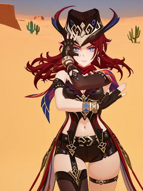 <lora:kars-pose-illustriousxl-lora-nochekaiser:1>, kar's pose, solo, jojo pose, hands up, straight-on, looking at viewer, smile, open hands,