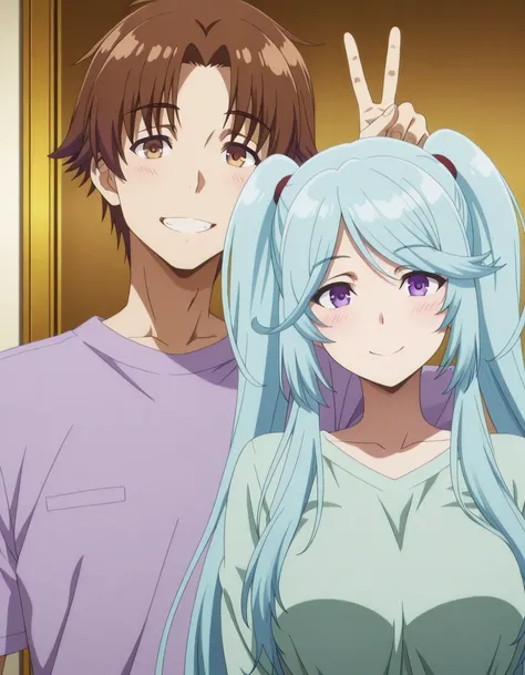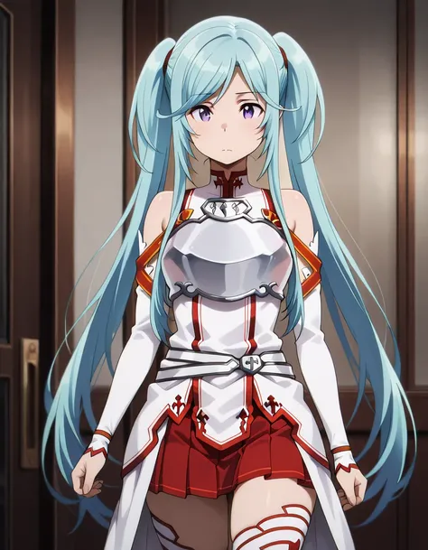 epsilon, long hair, twintails, blue hair, purple eyes, sidelocks, mature female, medium breasts, anime screencapbodysuit, scarf, purple scarf, gloves, black gloves,