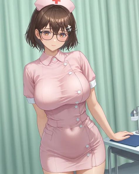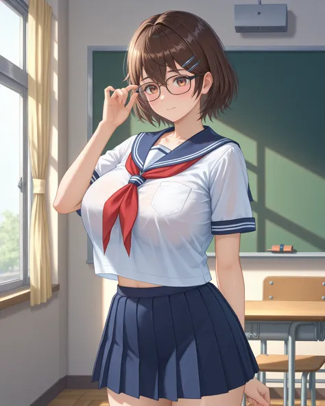 tsukushi \(doax vv\),brown hair,brown eyes,glasses,large breasts