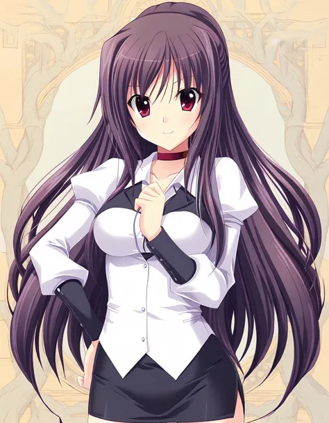 miyabi, purple hair, long hair, half updo, red eyes, large breasts,takasu-miyabi, mature female, purple hair, long hair, half updo, hair braid, red eyes, large breasts,