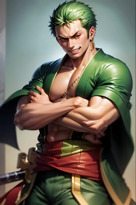 roronoa zoromuscular malescarscar across eyejapanese clothesgreen kimono