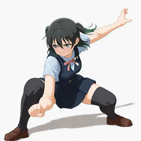 gokupose3,solo,fighting stance,,full body,serious,frown,clenched hand,shadow,closed mouth,crouching,leaning forward,one arm extended,other arm bent,wide stance,martial arts pose,