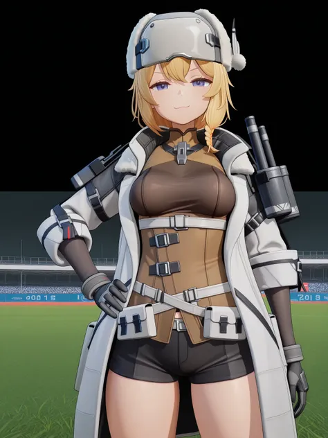 mosin nagant, long hair, blue eyes, blonde hair, bangs, braid, mature female, medium breasts, short ponytail, 3dgloves, hat, jacket, open clothes, shorts, black gloves, coat, fur trim, white headwear, white jacket, white coat, fur hat, ushankagloves, hat, holding, closed mouth, jacket, weapon, open clothes, shorts, black gloves, holding weapon, coat, fur trim, gun, white headwear, white jacket, holding gun, rifle, white coat, sniper rifle, fur hat, scope, bolt action, ushanka