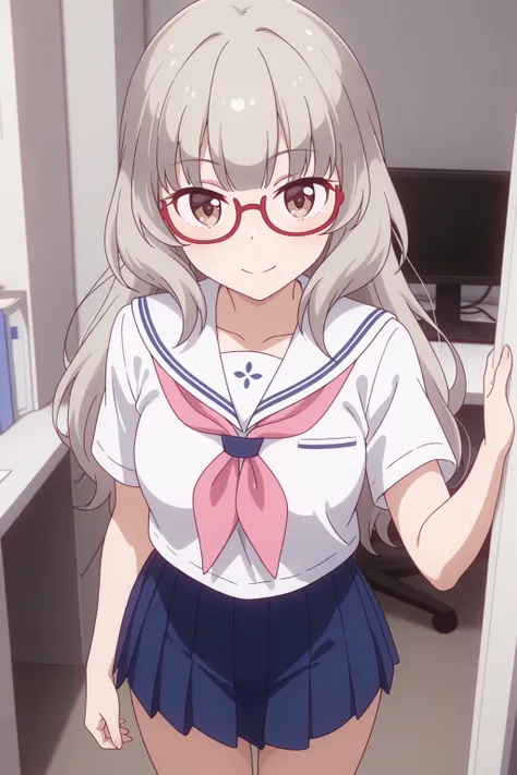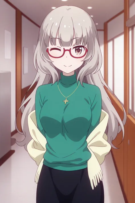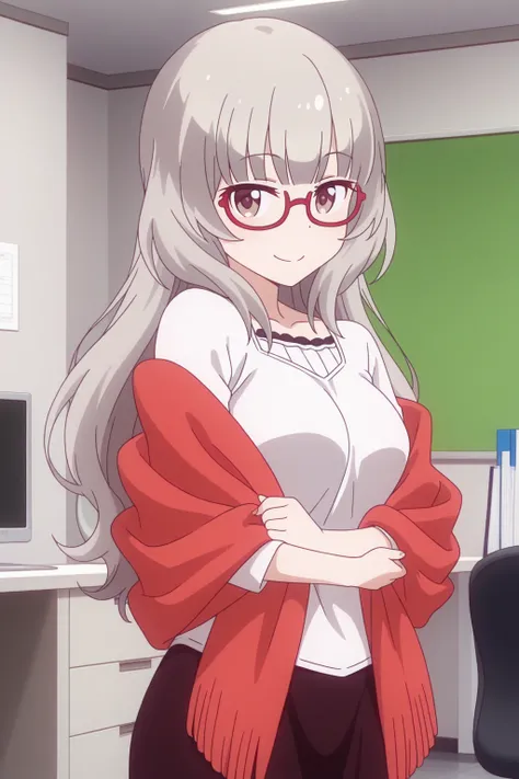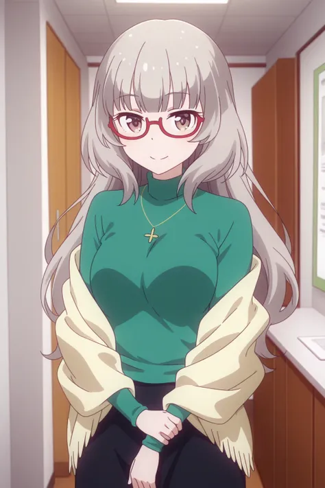 aashizuku, brown eyes, grey hair, red-framed eyewear, under-rim eyewear, shizukuc1, white shirt, red shawl, brown skirt, long skirt,aashizuku, brown eyes, grey hair, red-framed eyewear, under-rim eyewear, shizukuc2, necklace, green sweater, turtleneck sweater, white shawl, black skirt, long skirt,