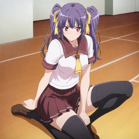 sakuyaamagiri, purple hair, twintails, hair ribbon, red eyesserafuku,skirt,thighhighs