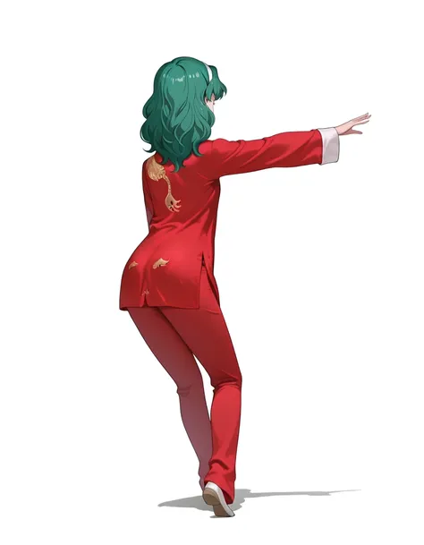 kaiou michiru, long hair, green hair, wavy hair, parted bangs, black hairband, blue eyes, green stud earrings, long sleeves, red shirt, blue sailor collar, green bow, striped bow, green skirt, plaid skirt, pleated skirt, medium skirt, white socks, ankle socks, black footwear, flats, high heelssailor neptune, long hair, green hair, wavy hair, parted bangs, blue eyes, planet earrings, circlet, sailor senshi uniform, magical girl, green choker, green sailor collar, blue bow, white gloves, elbow gloves, green skirt, pleated skirt, blue back bow, green footwear, strappy heels