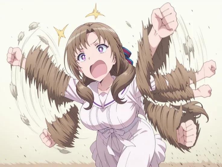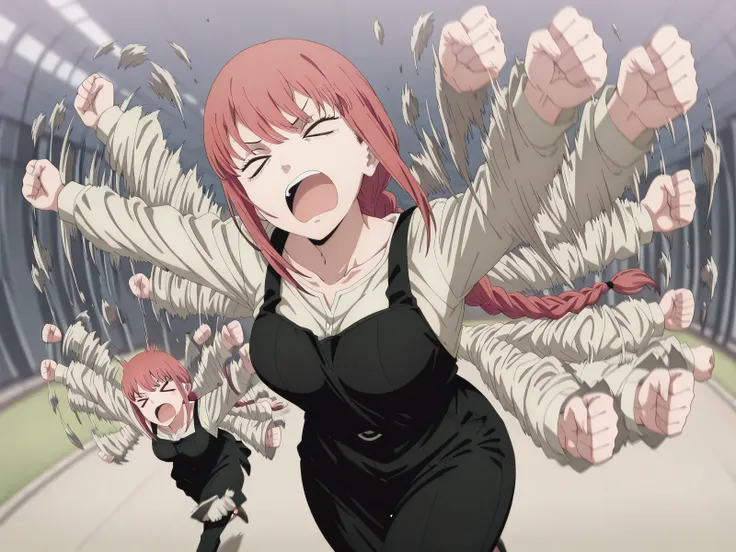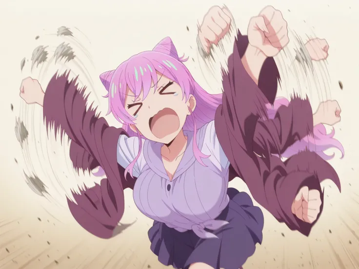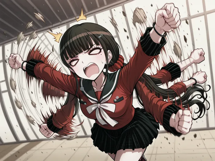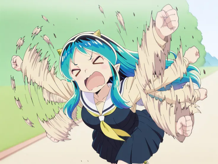 <lora:flailing-illustriousxl-lora-nochekaiser:1>, flailing, solo, open mouth, running, motion blur, outstretched arms, afterimage, > <, clenched fist, blurry