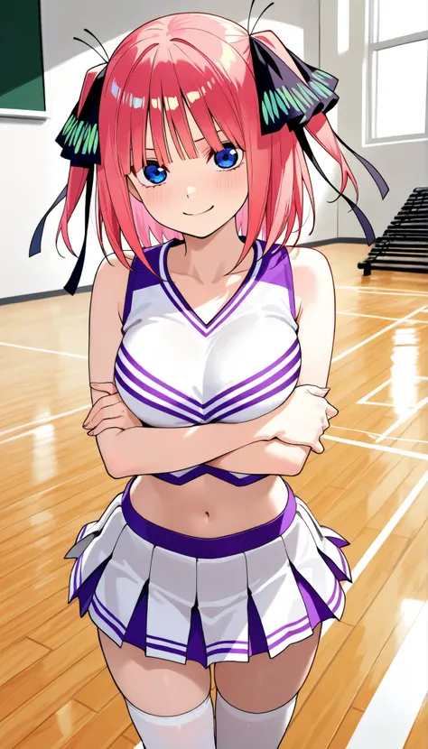 1girl, haruno sakura, pink hair, long hair, green eyesred shirt, red qipao ,zipper, short sleeves, bike shorts