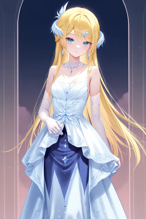 nightowl,white dress,long dress,jewelry,hair ornament,elbow gloves,