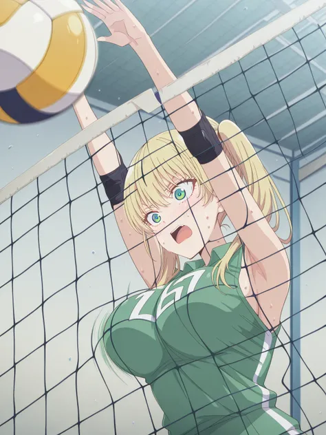 <lora:volleyball-block-illustriousxl-lora-nochekaiser:1>, volleyball block, solo, blush, open mouth, sweat, armpits, arms up, ball, volleyball, volleyball (object), volleyball net, motion blur, indoors, elbow sleeve, volleyball uniform, shorts, shirt, sleeveless, elbow pads, knee pads<lora:volleyball-block-illustriousxl-lora-nochekaiser:1>, volleyball block, solo, blush, open mouth, sweat, armpits, arms up, ball, volleyball, volleyball (object), volleyball net, motion blur, outdoors, beach, bikini, string bikini, sleeveless, collarbone, cleavage, navel, thighs, bare shoulders, bare arms, stomach, midriff