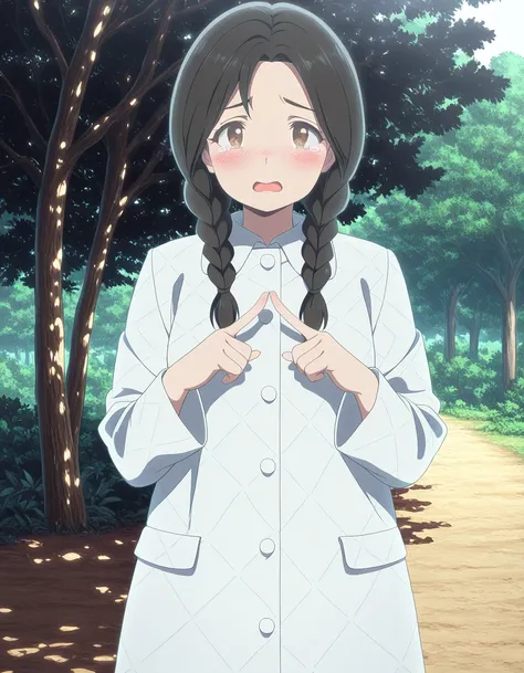 <lora:fidgeting-index-fingers-together-illustriousxl-lora-nochekaiser:1>, fidgeting index fingers together, index fingers together, open mouth, looking at viewer, fidgeting, blush, tearing up, upper body